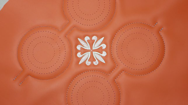 1、實現(xiàn)繡花、縫紉、沖孔于一體,花型任意設(shè)計,輕松實現(xiàn)沖、繡、縫任意搭配的復(fù)雜工藝。