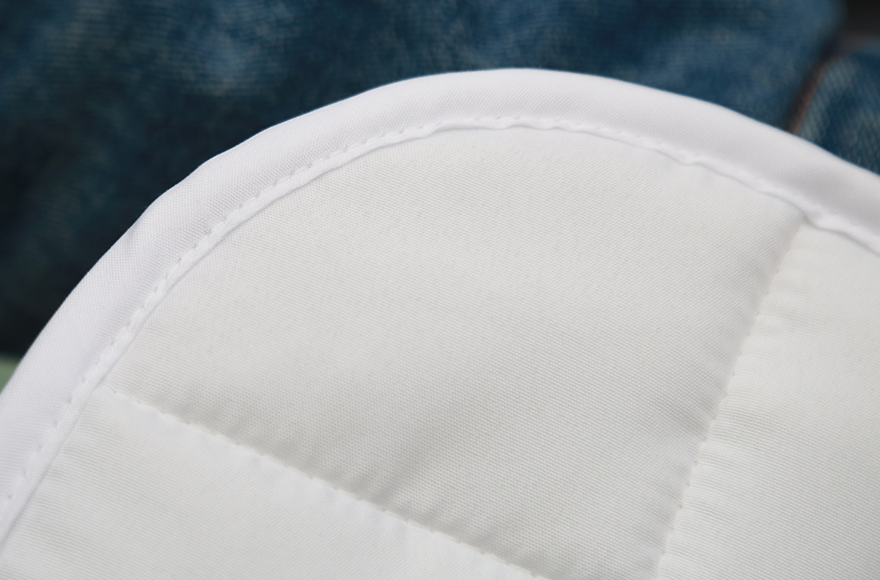 被芯,床笠,毯子等產(chǎn)品的自動包邊及上商標(biāo)。可配合整體被芯生產(chǎn)線加工,實現(xiàn)自動包邊作業(yè)。也可單獨應(yīng)用于絎縫后成品的全自動包邊作業(yè)。
