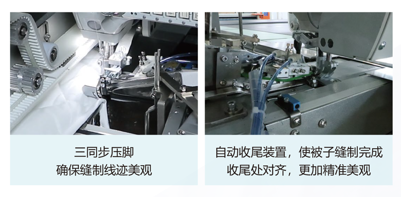 5、自動收尾裝置,使被子縫制完成收尾處對齊,更加精準(zhǔn)美觀。