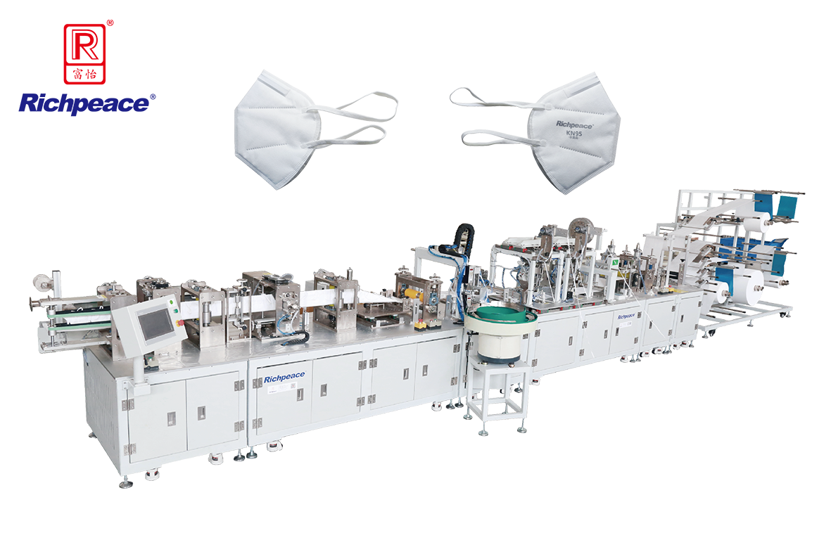 1.全自動化生產(chǎn)N95/KN95折疊口罩,從面料輸入到成品輸出,自動完成口罩花型焊接,鼻梁夾置入,標(biāo)識噴印,頭帶焊接,輪廓切割與廢料分離等,成品外型尺寸標(biāo)準(zhǔn),合格率高;